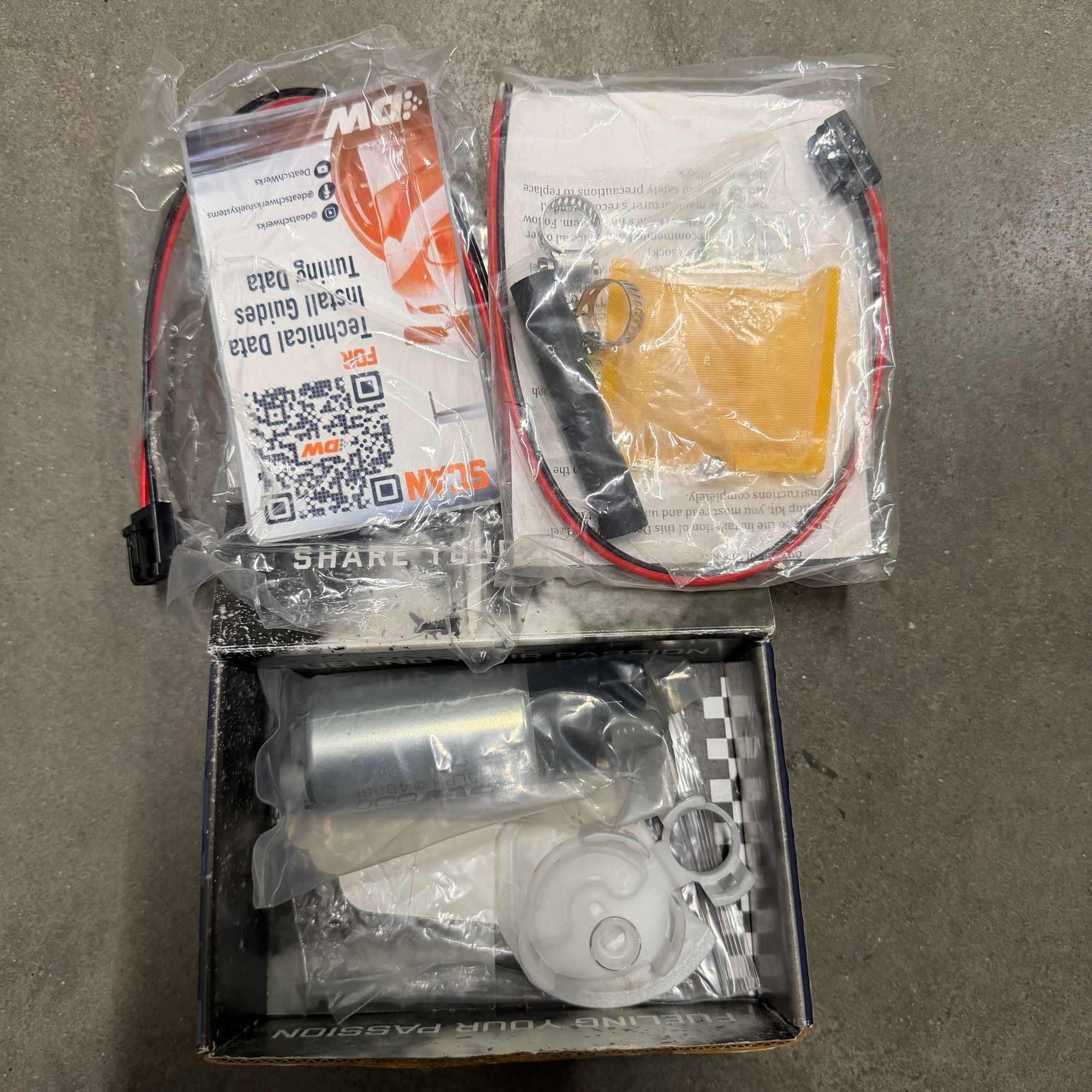 DW65C 265lph compact fuel pump w/o mounting clips w/install kit for